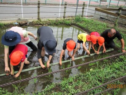 たいよう組(5才児)さんが、田植えをしました。