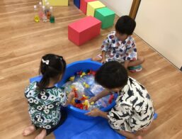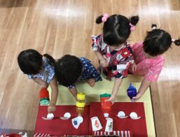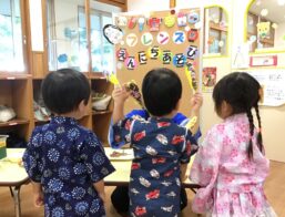 縁日あそび🐟 2025.09.1 フレンズランド、8月最後のお楽しみは縁日あそび。 金魚すくいや射的等の縁日あそびを楽しみました。 焼きそばをジュ―ジュ―焼いて「へい!いらっしゃい!」とお店屋さんになったり 「チョコバナナください!」とお買い物も楽しみましたよ。 山車引きも「わっしょいピッピッ」と元気に廊下をねり歩きました! ~お知らせ~ 2025年度の新規登録ですが、現時点で一時的に止めております。 登録の再開は未定です。再開になりましたらホームページ等でお知らせいたします。