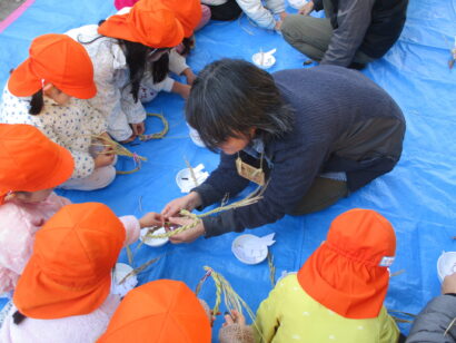 園で育てた稲の藁を使いしめ縄作りも行いました🌾