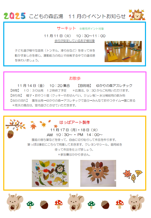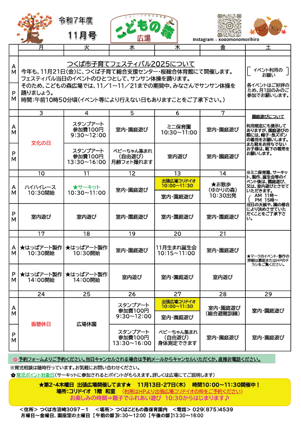 | 実施主体 | 社会福祉法人 花畑福祉会 つくばこどもの森保育園 |